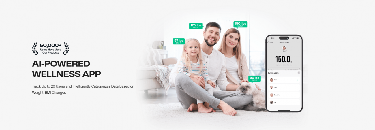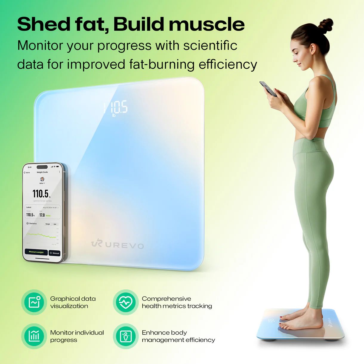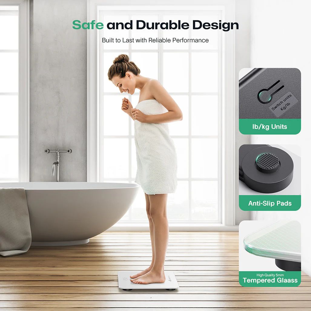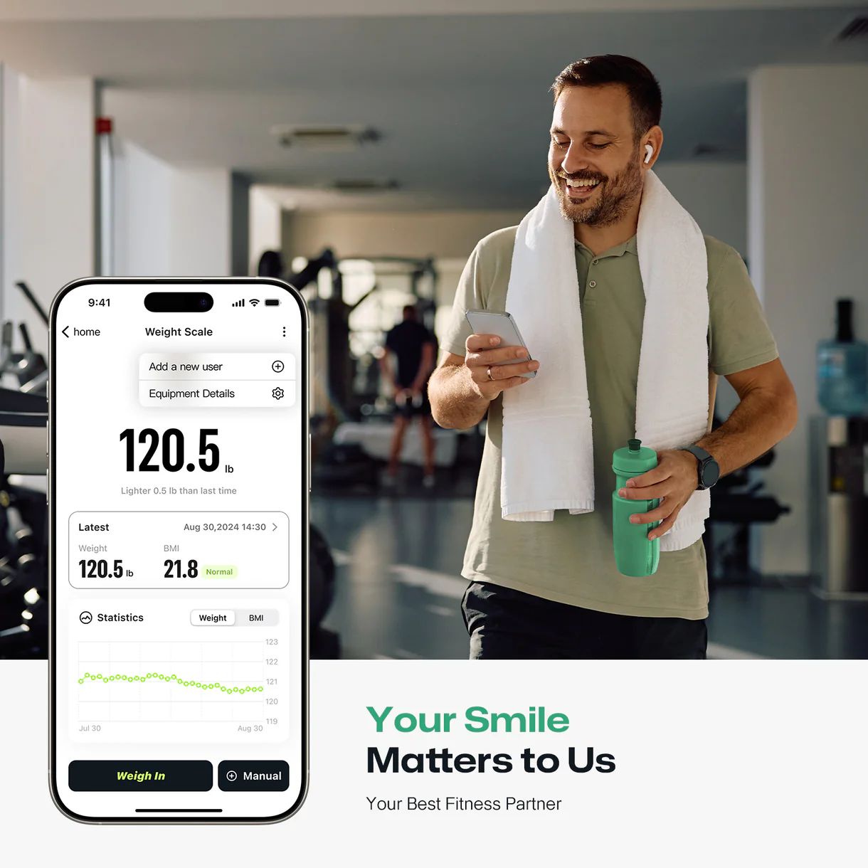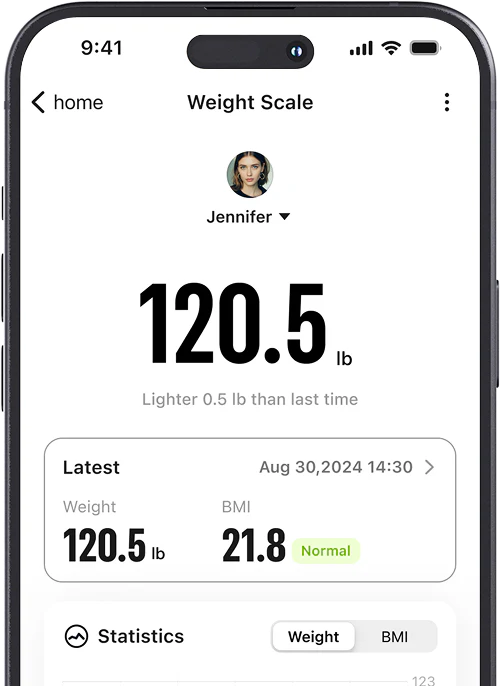 Проследявайте тегло и BMI с точност. Изчистен дизайн за лесен контрол на здравето у дома.