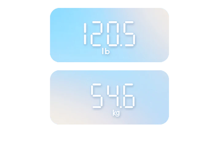 Лесно превключвайте между паундове (lb) и килограми (kg) с просто ръчно настройване, което ви дава пълен контрол върху предпочитаната от вас единица за тегло.